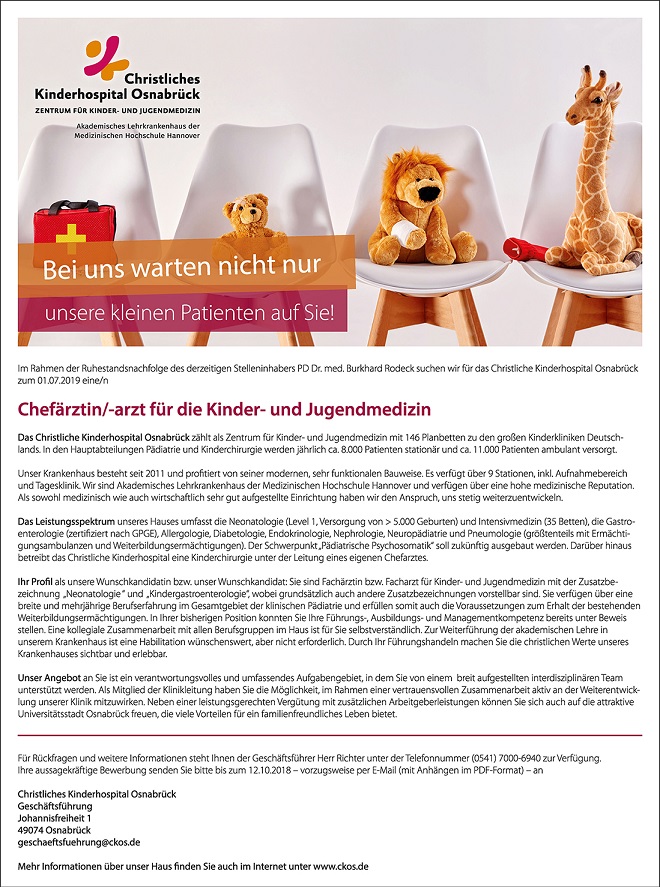 - „Bei uns warten nicht nur unsere kleinen Patienten auf Sie!“, von: Christliches Kinderhospital Osnabrück / Agentur: Schult-Media