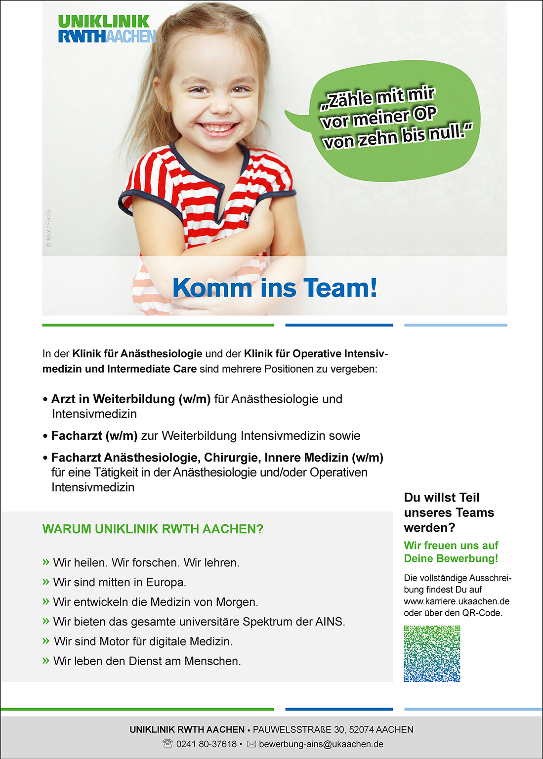 - „Komm ins Team!“, von: Uniklinik RWTH Aachen / Agentur: CN-COLOR