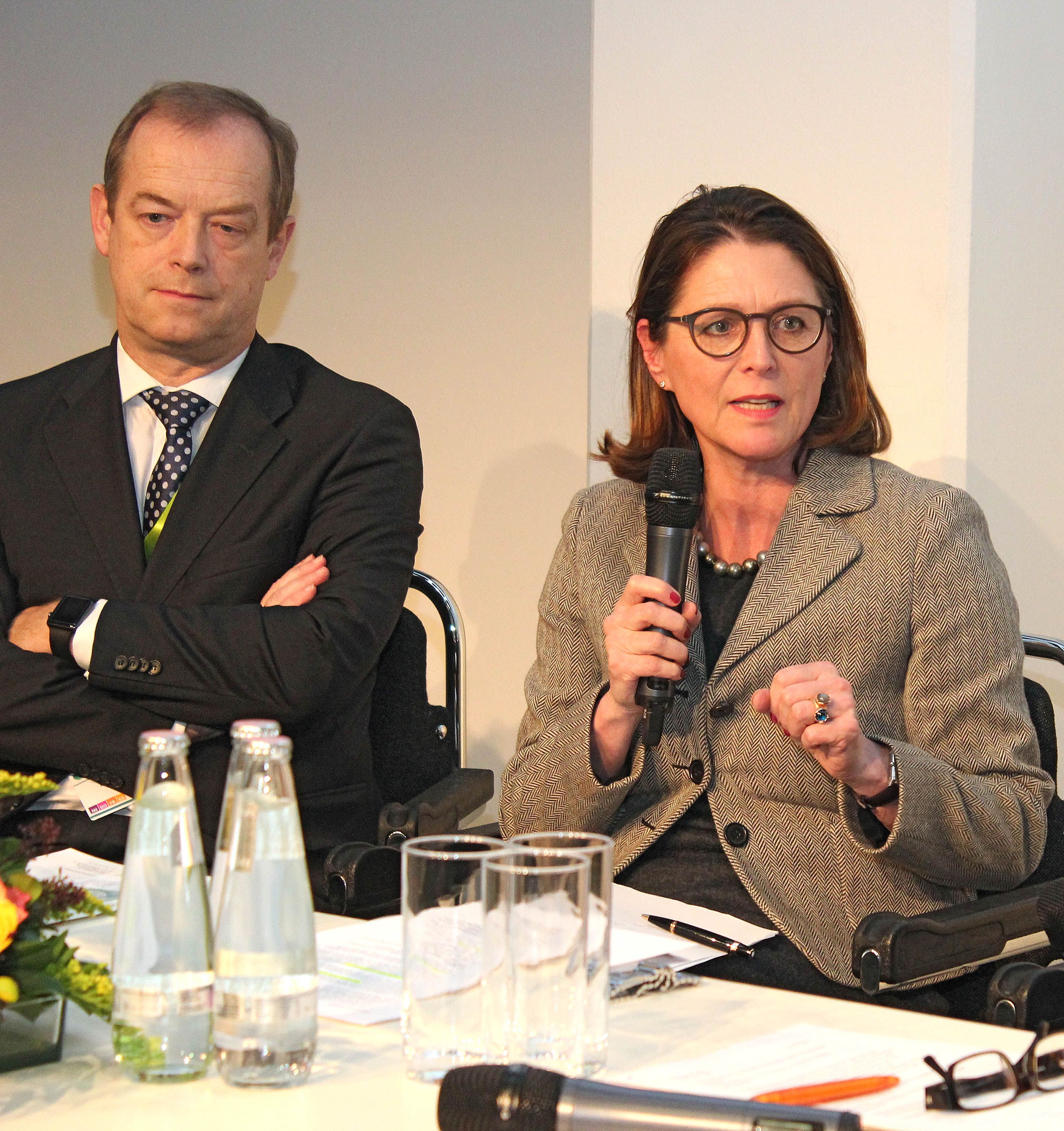- Prof. Dr. med. Rita Schmutzler, Direktorin des Zentrums Familiärer Brust- und Eierstockkrebs, Uniklinik Köln (r.) mit Prof. Hallek (l.)