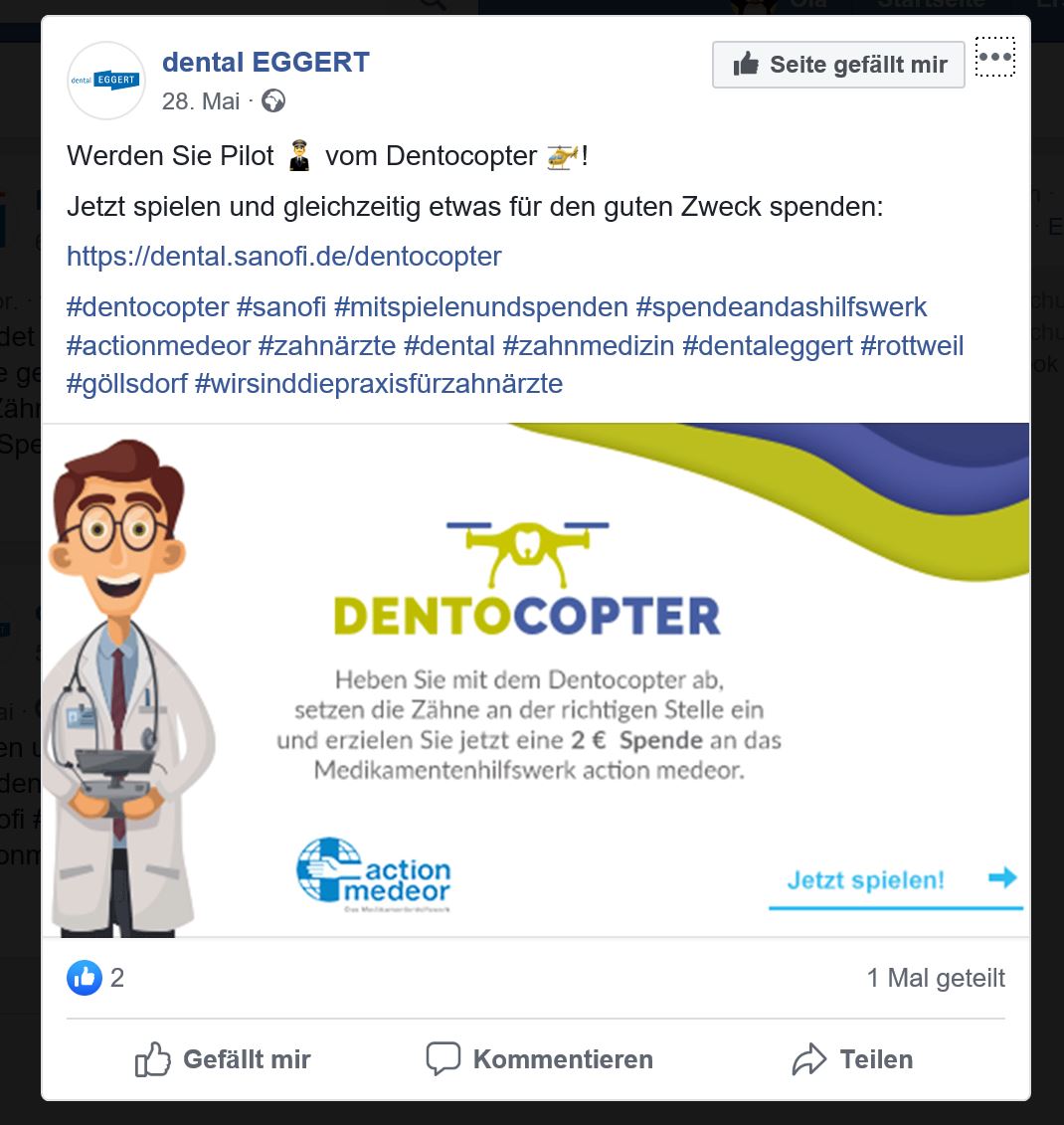 - Verschiedene Dentalfachhändler haben das Spiel auf Facebook beworben. Dazu gehört auch dental EGGERT. © EGGERT (Screenshot)