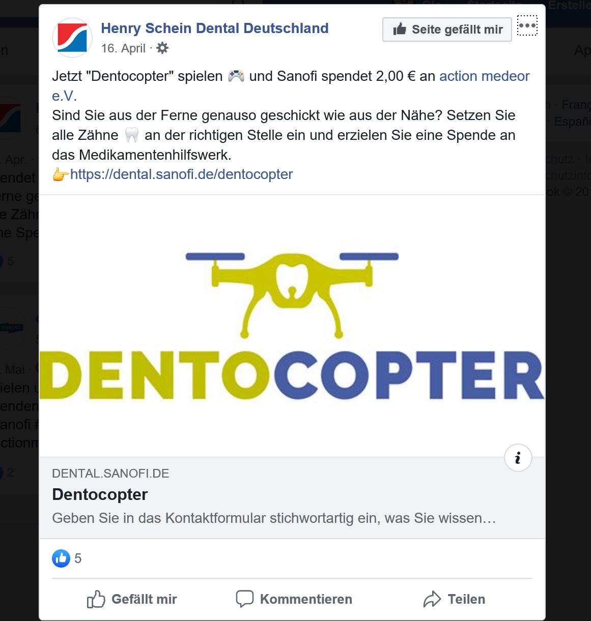- Henry Schein Dental postete über den Dentocopter auf Facebook. .©Screenshot